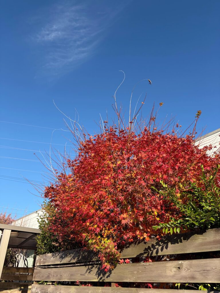 デイサービスの中庭にあるもみじが綺麗な色になってきました。