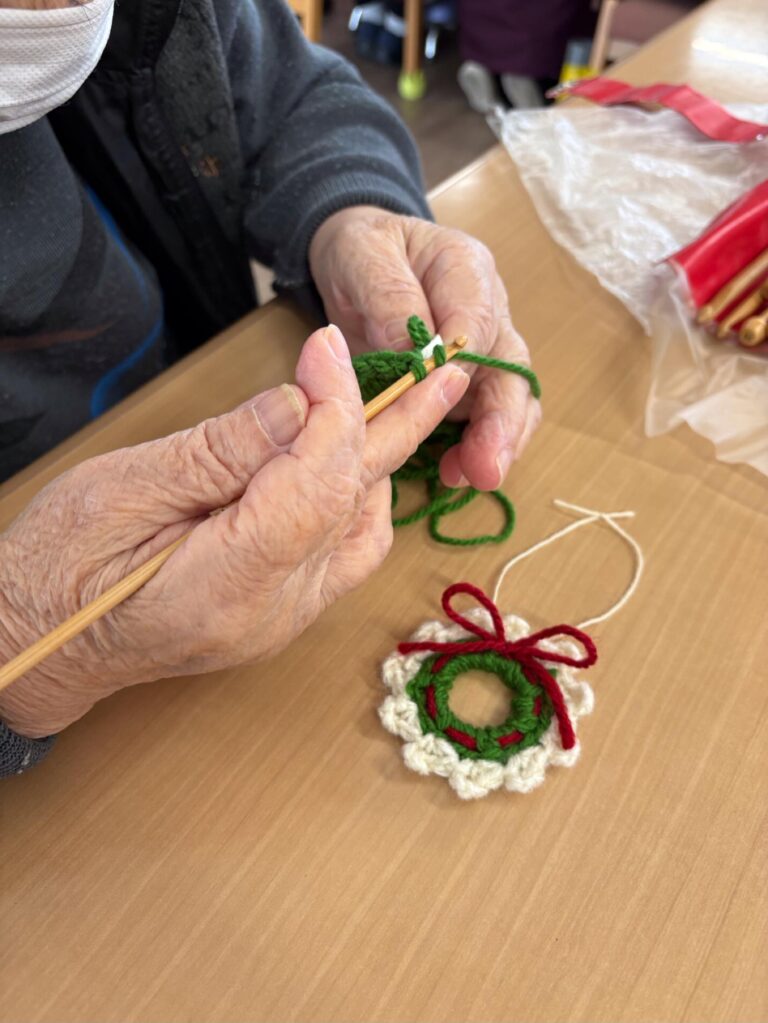 ケイト🧶でクリスマスリースを作成しました。