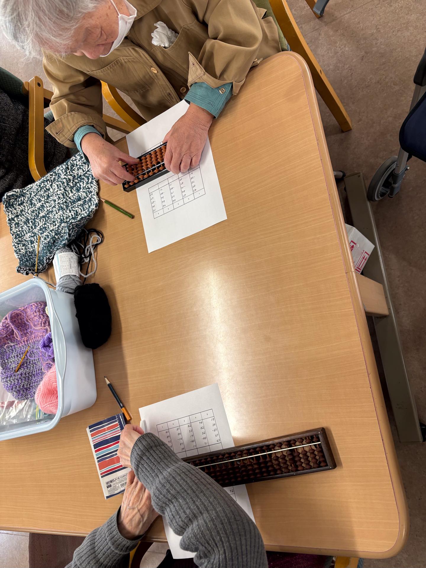 午後は、そろばん🧮、筆🖌️ペン、編み物🧶などそれぞれ取り組みました。