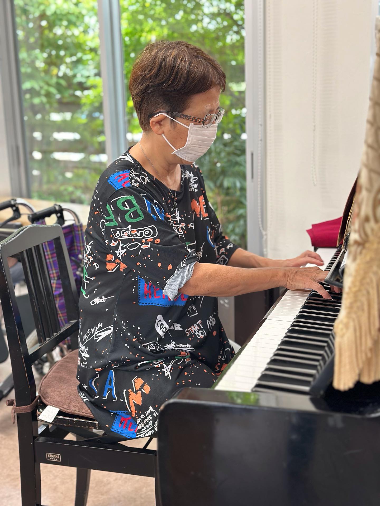 ピアノの音色が響き渡ると、利用者様は楽しげな表情になり