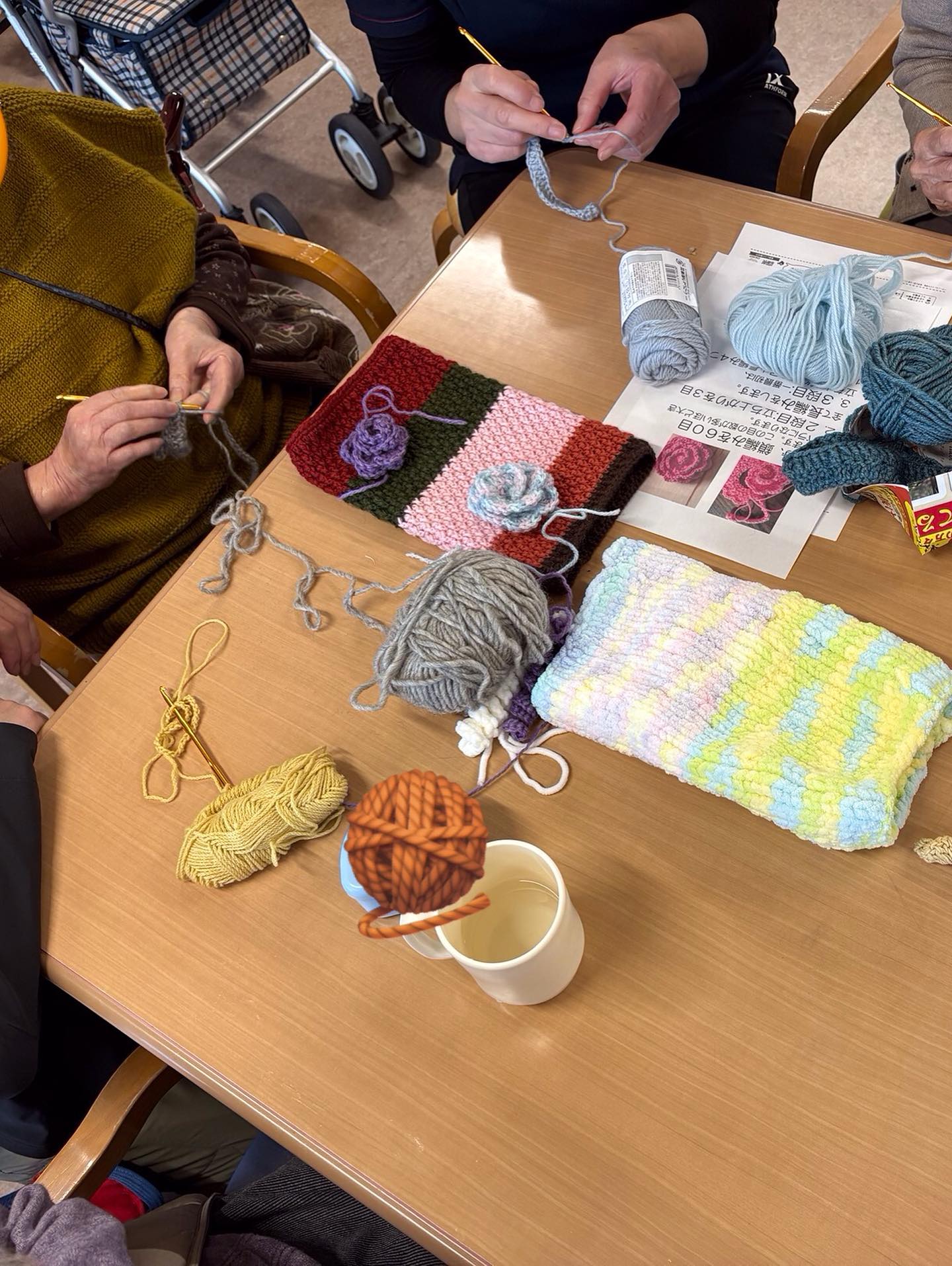 そして、ボランティアが見えてのマフ🧶作成。マフにつけるバラを作成し、とても集中した